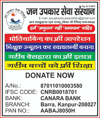 1. ग्वालटोली मकबरा, छोटे मियां का हाता कर्नलगंज, बृजेन्द्र स्वरूप पार्क, खालसा गर्ल्स इंटर कालेज, गोविन्द नगर में जन उपकार सेवा संस्थान द्वारा निःशुल्क मोतिया बिन्दु आपरेशन शिविर लगाकर 1200 मोतियाबिन्द पीड़ितों का कनिका हास्पिटल हर्ष नगर में आपरेशन कराया।